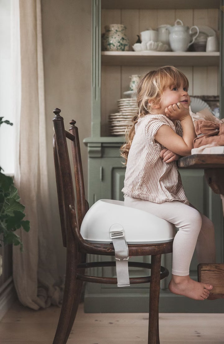 Easy to take with you and fits most chairs – discover our booster seat for little dinner guests!